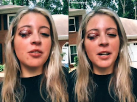 The young woman shared graphic photos of her injury and her detached eyelid, which was later sewn back onto her face.