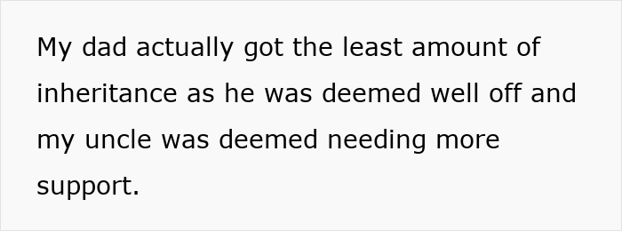 The man in this story had moved to another country in his late twenties and had started earning well, but despite that, his father decided to leave their family home to him as an inheritance. He also willed his other house and several more valuable items to his older son, who he felt wasn’t as well-off financially.