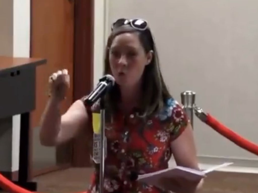 Her mic was cut off when she again said the school board was populated by “demonic entities”.