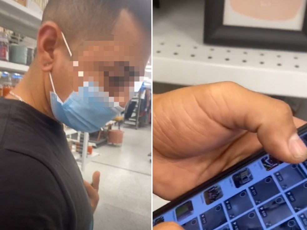 During a shopping trip to a Ross department store, TikToker @gretchennweenie captured the moment she confronted the man and demanded him delete his recordings.