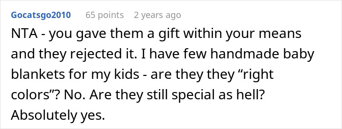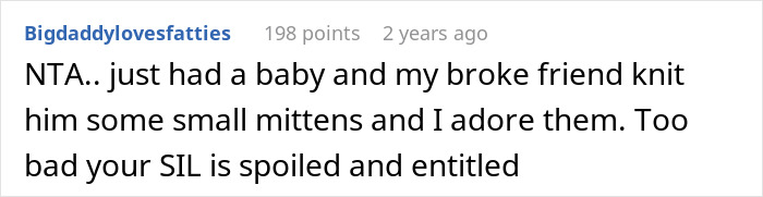 This person gave his SIL a handmade gift, but she refused to accept it and asked for a new one instead