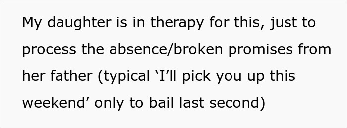Moreover, more than once the situation was such that the dad himself said that he would come over soon, made a promise to the daughter – but at the last moment he avoided fulfilling it. And not just once, not twice, not a dozen times. As a result, the girl was incredibly upset every time, and now, according to the mom’s words, she’s even undergoing therapy because of this.