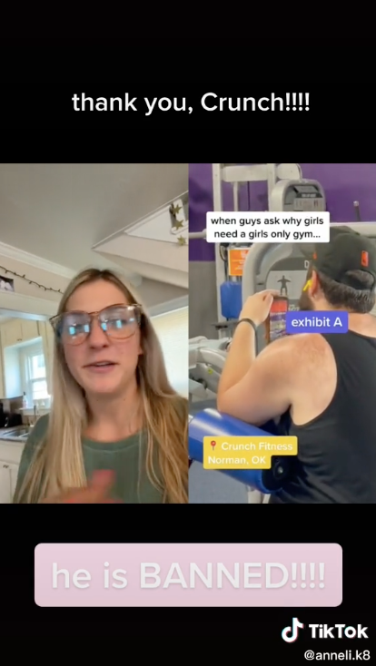 Anneli has since revealed that the gym, which she identified as Crunch Fitness in Norman, Oklahoma that they have banned the man from their venue after the video was brought to their attention.