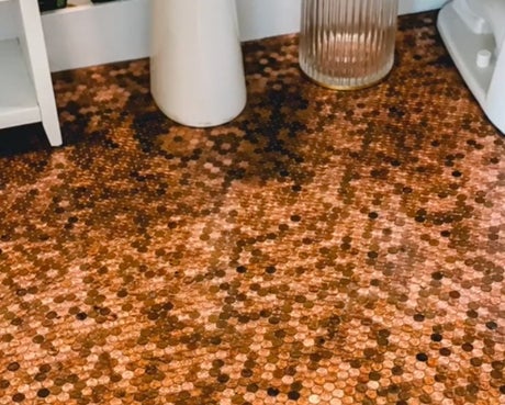 A woman spent 16 hours gluing down 7,700 pennies to decorate her bathroom floor.