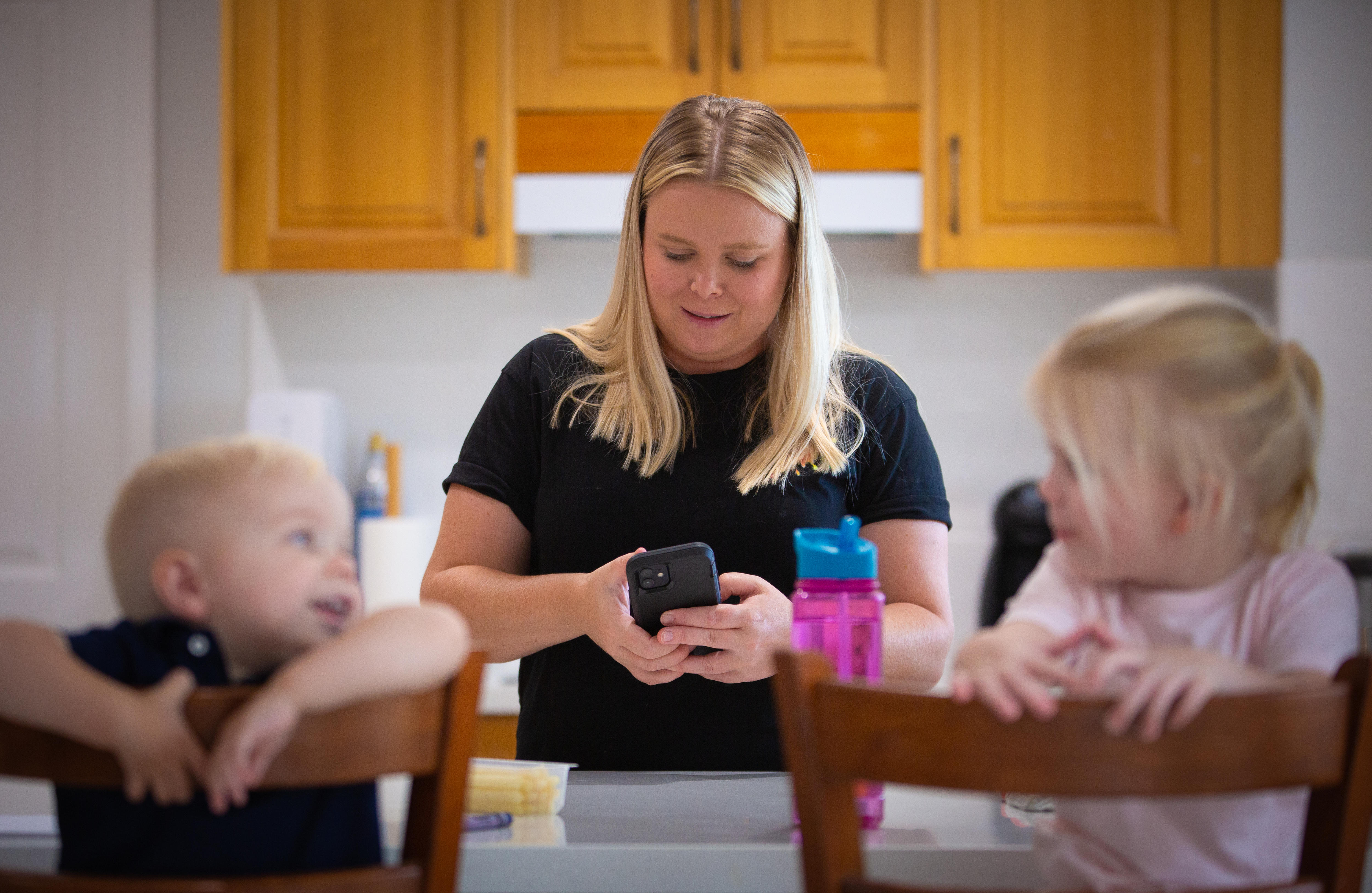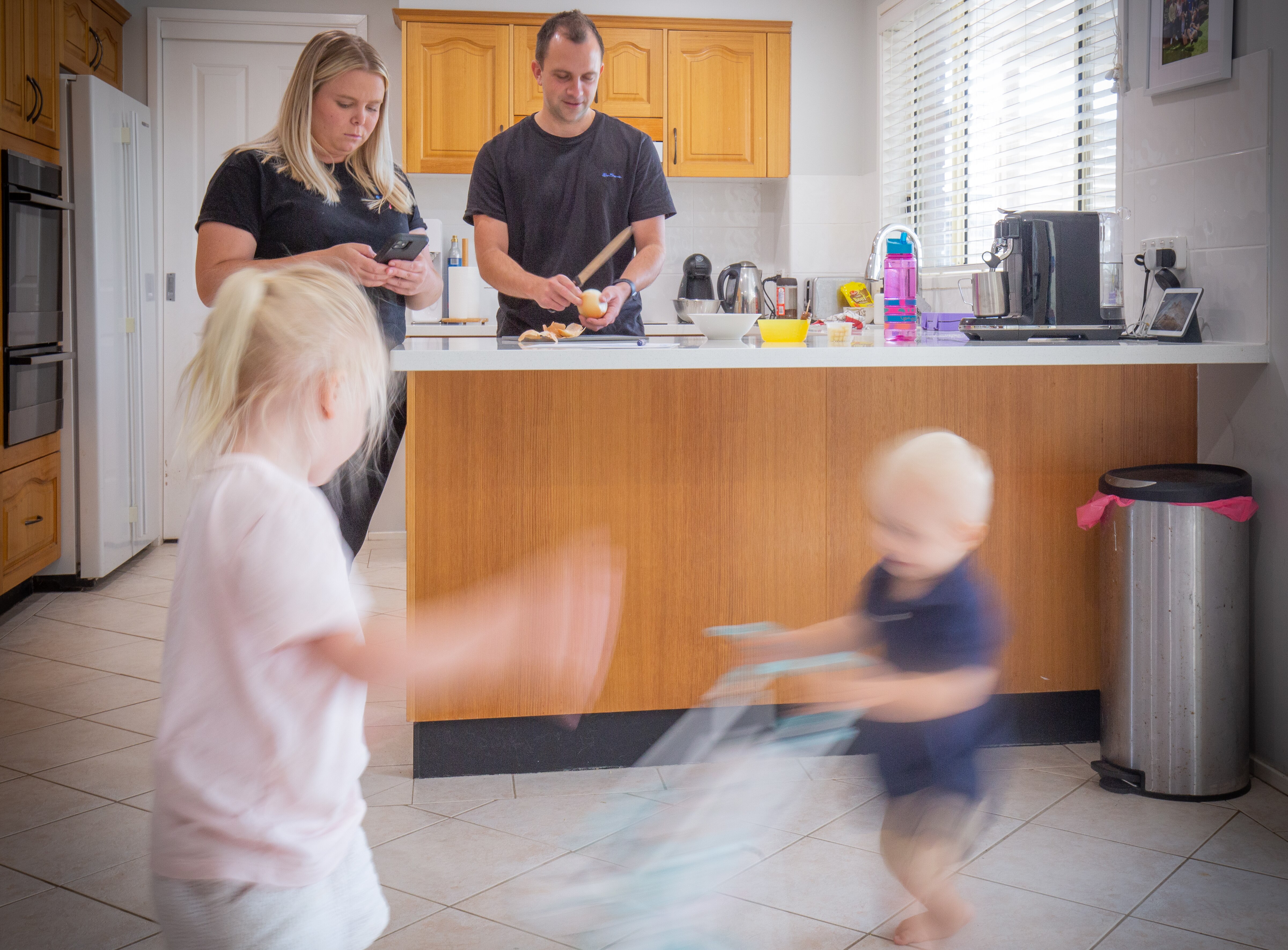 Ms Titchener and her husband Lee both use the phrase "stretched thin" to describe raising two small kids while one parent works full time and the other runs a business.