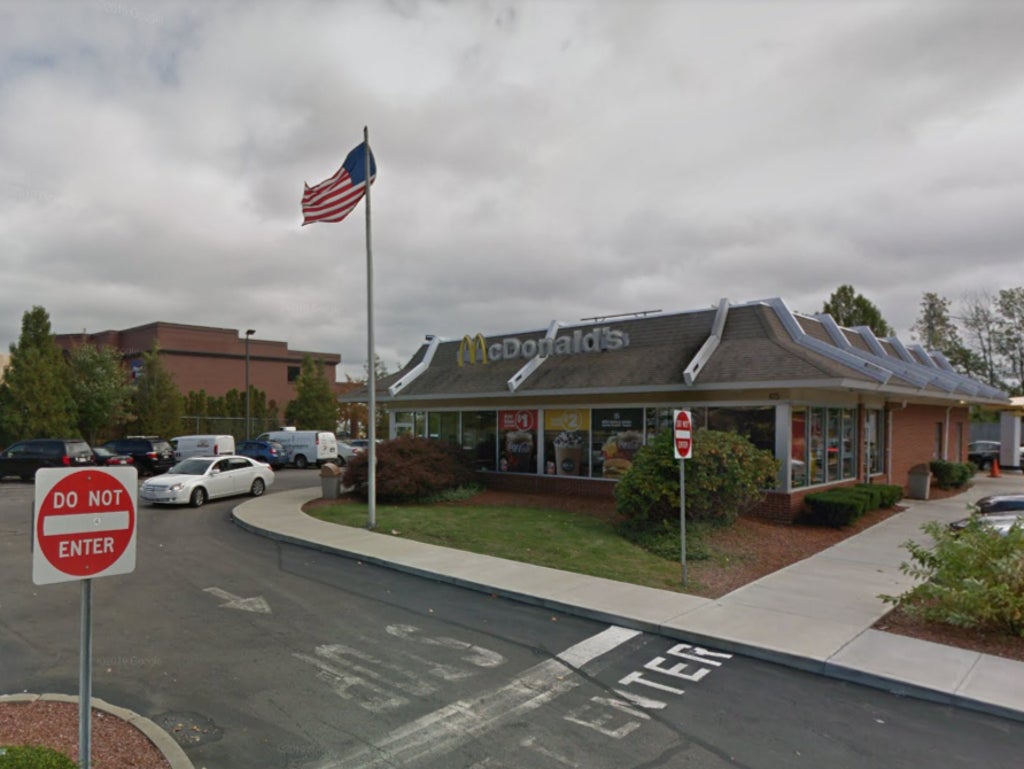 A woman has been arrested in Massachusetts following a police chase in which she drove a stolen truck through a McDonald’s drive-thru.