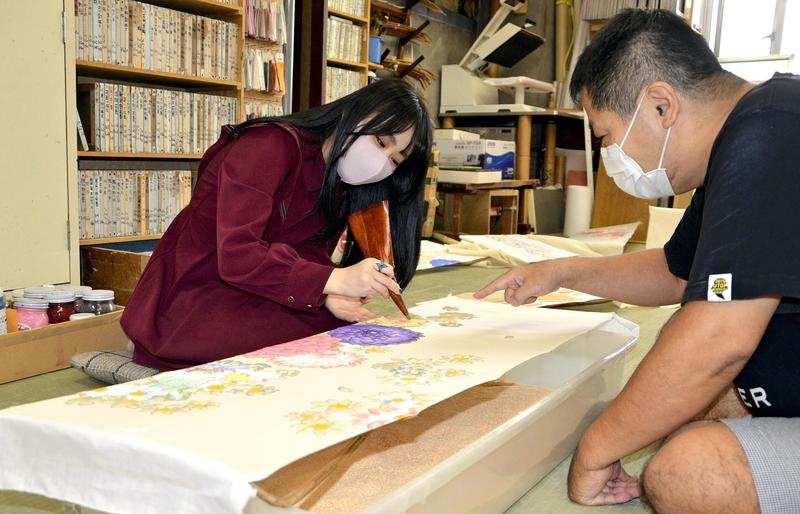 Kato is usually busy making kabuki and stage costumes, but he had received almost no orders since March after many events were cancelled. As he felt he had been given plenty of time to teach the yuzen culture, Kato started to work with Manaka in mid-September.