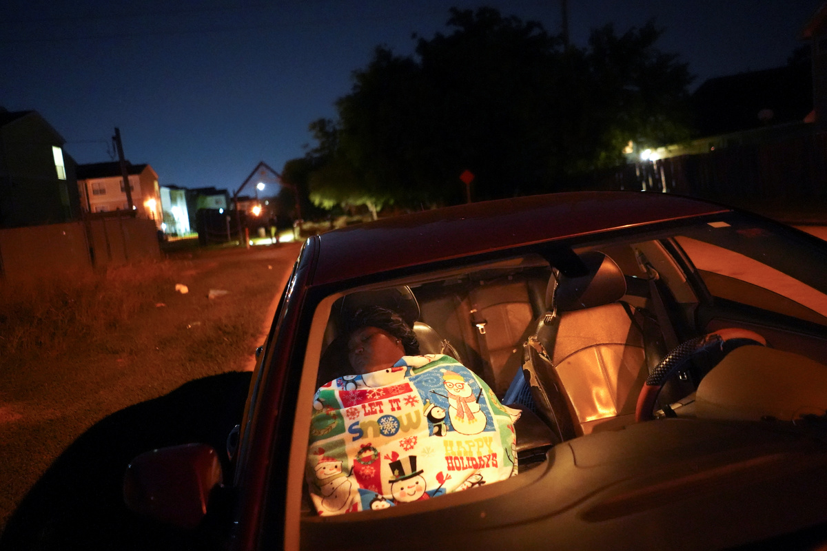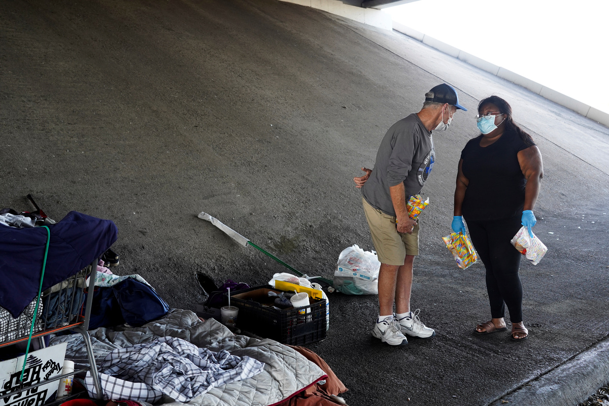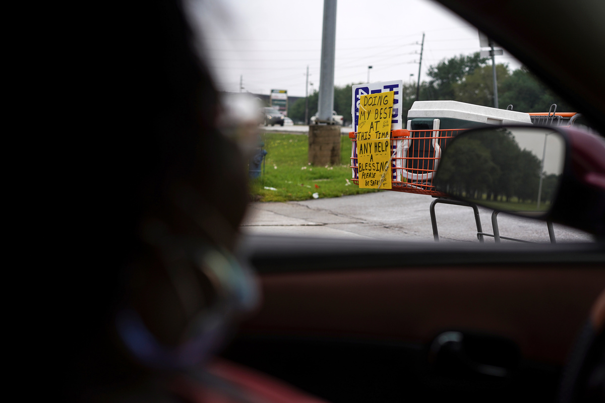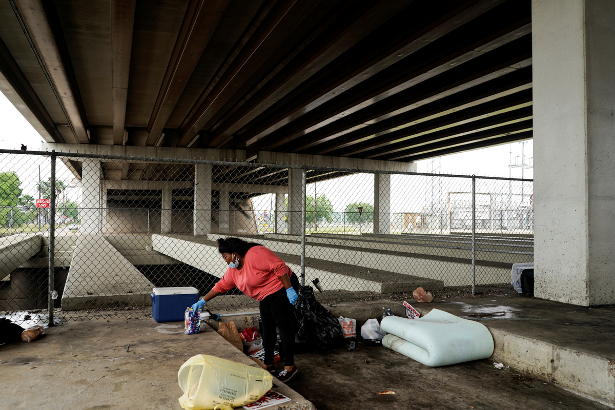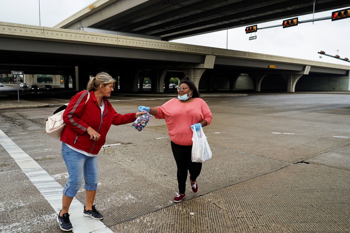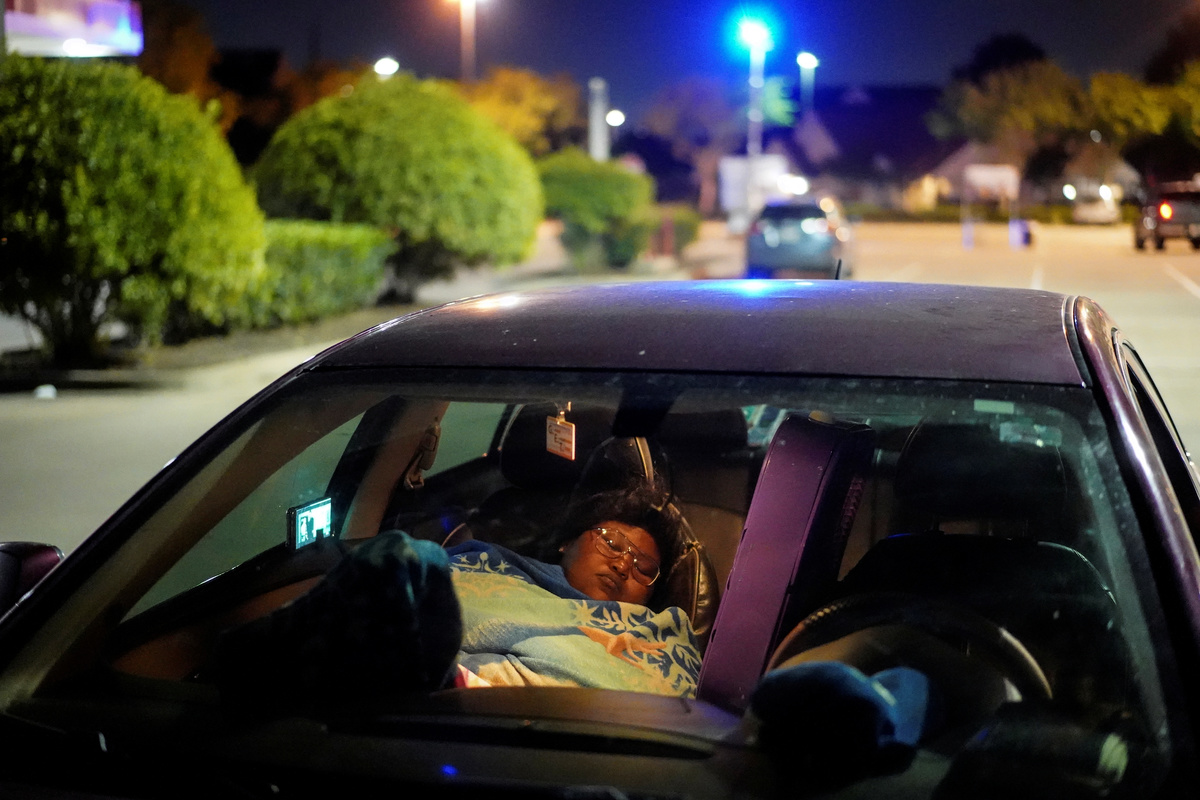 FILE PHOTO: Dominick Walton, who is homeless herself, adjusts her mask in her car before she drives to the next location to serve food to homeless people amid the coronavirus disease (COVID-19) outbreak in Houston, Texas, U.S., April 19, 2020. REUTERS/Go NakamuraFILE PHOTO: Dominick Walton, who is homeless herself, reaches to turn on the light in her car as she prepares to sleep amid the coronavirus disease (COVID-19) outbreak in Houston, Texas, U.S., April 26, 2020. REUTERS/Go NakamuraFILE PHOTO: Dominick Walton, who is homeless herself, plays with her nieces Kenley and Hazel as they self-quarantine at Dominick's sister's apartment amid the coronavirus disease (COVID-19) outbreak in Houston, Texas, U.S., April 25, 2020. REUTERS/Go NakamuraFILE PHOTO: Dominick Walton, who is homeless herself, poses in her car after serving food to homeless people amid the coronavirus disease (COVID-19) outbreak in Houston, Texas, U.S., April 19, 2020. REUTERS/Go NakamuraFILE PHOTO: Dominick Walton, who is homeless, sleeps in her car amid the coronavirus disease (COVID-19) in Houston, Texas, U.S., April 26, 2020. REUTERS/Go NakamuraFILE PHOTO: Dominick Walton, who is homeless herself, relaxes in the car where she sleeps in at a parking space amid the coronavirus disease (COVID-19) outbreak in Houston, Texas, U.S., April 21, 2020. REUTERS/Go NakamuraFILE PHOTO: Dominick Walton, who is homeless herself, serves food to homeless people amid the coronavirus disease (COVID-19) outbreak in Houston, Texas, U.S., April 19, 2020. REUTERS/Go NakamuraFILE PHOTO: Dominick Walton, who is homeless herself, prepares her bed for the day in her car at a parking space amid the coronavirus disease (COVID-19) outbreak in Houston, Texas, U.S., April 21, 2020. REUTERS/Go NakamuraFILE PHOTO: Dominick Walton, who is homeless, plays with her nieces Kenley and Hazel as they self-quarantine at Dominick's sister's apartment amid the coronavirus disease (COVID-19) outbreak in Houston, Texas, U.S., April 25, 2020. REUTERS/Go NakamuraFILE PHOTO: Dominick Walton, who is homeless, plays with her niece Hazel as they self-quarantine at Dominick's sister's apartment amid the coronavirus disease (COVID-19) outbreak in Houston, Texas, U.S., April 25, 2020. REUTERS/Go NakamuraFILE PHOTO: Dominick Walton, who is homeless herself, prepares food bags for homeless people in her sister's apartment amid the coronavirus disease (COVID-19) outbreak in Houston, Texas, U.S., April 26, 2020. REUTERS/Go NakamuraFILE PHOTO: Dominick Walton, who is homeless herself, puts a message on every food bags she makes for homeless people amid the coronavirus disease (COVID-19) outbreak in Houston, Texas, U.S., April 19, 2020. REUTERS/Go NakamuraFILE PHOTO: Dominick Walton, who is homeless herself, relaxes and watches a video on her smartphone before sleeping in her car at a parking space amid the coronavirus disease (COVID-19) outbreak in Houston, Texas, U.S., April 21, 2020. REUTERS/Go NakamuraFILE PHOTO: Dominick Walton, who is homeless herself, relaxes and watches a video on her smartphone before sleeping in her car at a parking space amid the coronavirus disease (COVID-19) outbreak in Houston, Texas, U.S., April 21, 2020. REUTERS/Go NakamuraFILE PHOTO: Dominick Walton, who is homeless herself, drives by a homeless person's shopping cart with a placard which reads "Doing my best at this time. Any help, blessing" amid the coronavirus disease (COVID-19) outbreak in Houston, Texas, U.S., April 19, 2020. REUTERS/Go NakamuraFILE PHOTO: Dominick Walton, who is homeless herself, walks back to her car after handing out food bags to homeless people amid the coronavirus disease (COVID-19) outbreak in Houston, Texas, U.S., April 26, 2020. REUTERS/Go NakamuraFILE PHOTO: Dominick Walton, who is homeless herself, watches a video with her nieces Kenley and Hazel as they self-quarantine at Dominick's sister's apartment amid the coronavirus disease (COVID-19) outbreak in Houston, Texas, U.S., April 25, 2020. REUTERS/Go NakamuraFILE PHOTO: Dominick Walton, who is homeless, plays with her nieces Kenley and Hazel as they self-quarantine at Dominick's sister's apartment amid the coronavirus disease (COVID-19) outbreak in Houston, Texas, U.S., April 25, 2020. REUTERS/Go NakamuraFILE PHOTO: Dominick Walton, who is homeless herself, serves food to homeless people amid the coronavirus disease (COVID-19) outbreak in Houston, Texas, U.S., April 26, 2020. REUTERS/Go NakamuraFILE PHOTO: Dominick Walton, who is homeless, sleeps in her car amid the coronavirus disease (COVID-19) outbreak in Houston, Texas, U.S., April 26, 2020. REUTERS/Go NakamuraFILE PHOTO: Dominick Walton, who is homeless herself, prepares food bags for homeless people in her sister's apartment amid the coronavirus disease (COVID-19) outbreak in Houston, Texas, U.S., April 26, 2020. REUTERS/Go NakamuraFILE PHOTO: Dominick Walton, who is homeless herself, poses in the car where she sleeps in at a parking space amid the coronavirus disease (COVID-19) outbreak in Houston, Texas, U.S., April 21, 2020. REUTERS/Go NakamuraFILE PHOTO: Dominick Walton, who is homeless herself, puts a message on every food bag she makes for homeless people amid the coronavirus disease (COVID-19) outbreak in Houston, Texas, U.S., April 26, 2020. REUTERS/Go NakamuraFILE PHOTO: A homeless person shows what is contained in the food bag she was given by Dominick Walton, who is also homeless herself, amid the coronavirus disease (COVID-19) outbreak in Houston, Texas, U.S., April 19, 2020. REUTERS/Go NakamuraFILE PHOTO: Dominick Walton, who is homeless, plays with her nieces Kenley and Hazel as they self-quarantine at Dominick's sister's apartment amid the coronavirus disease (COVID-19) outbreak in Houston, Texas, U.S., April 25, 2020. REUTERS/Go Nakamura