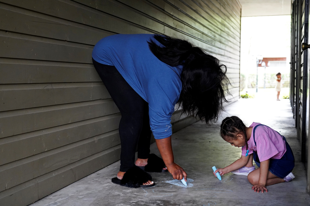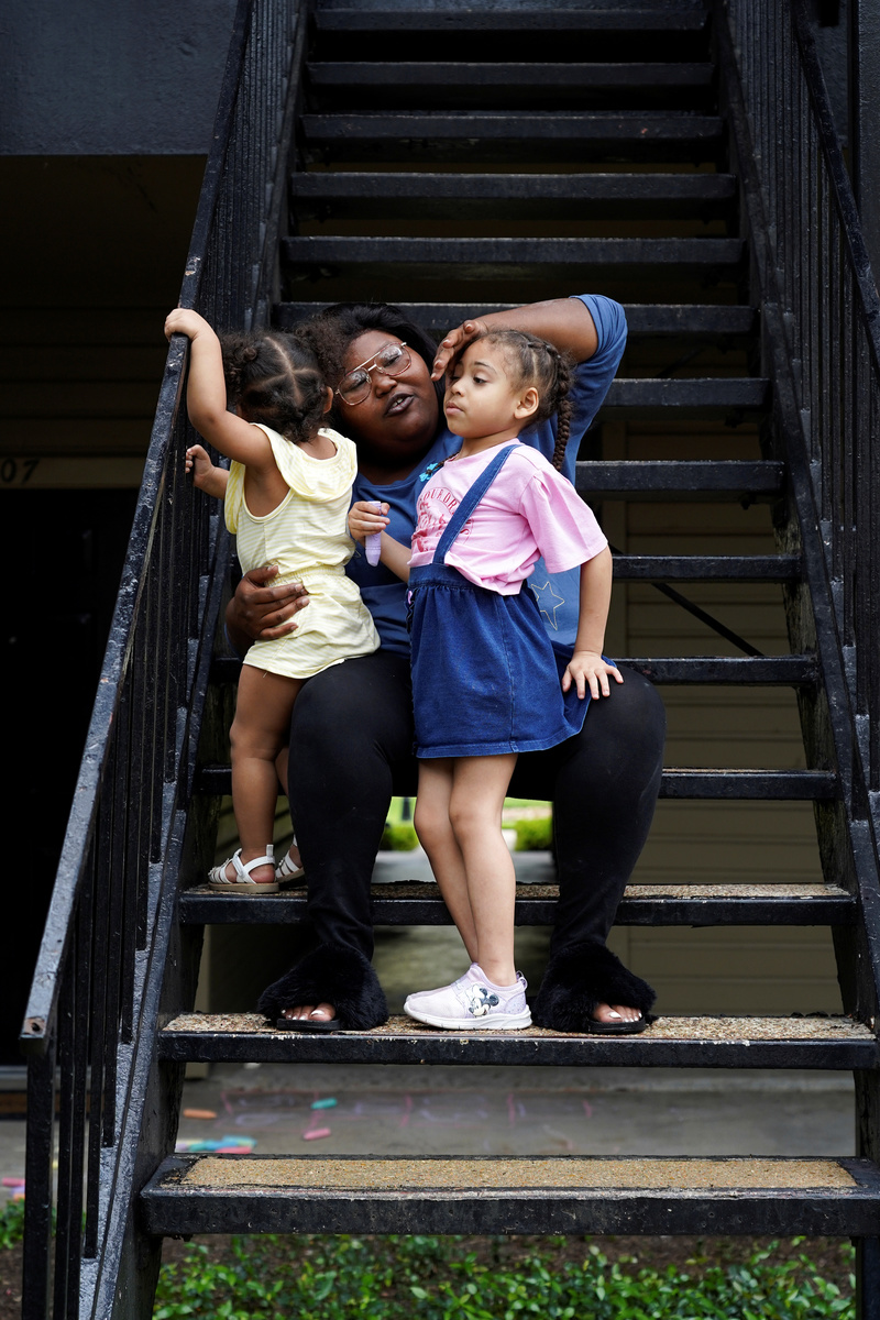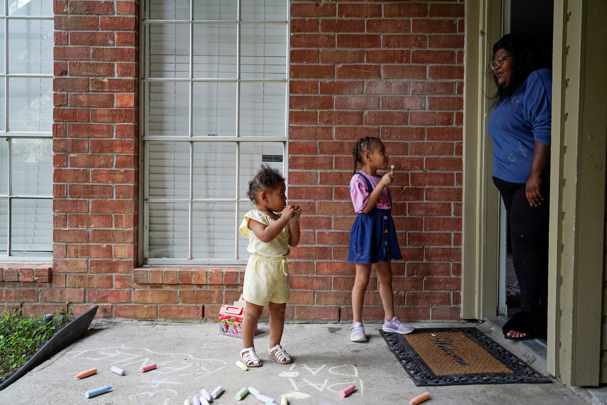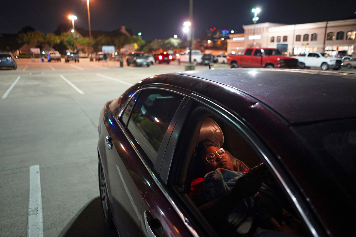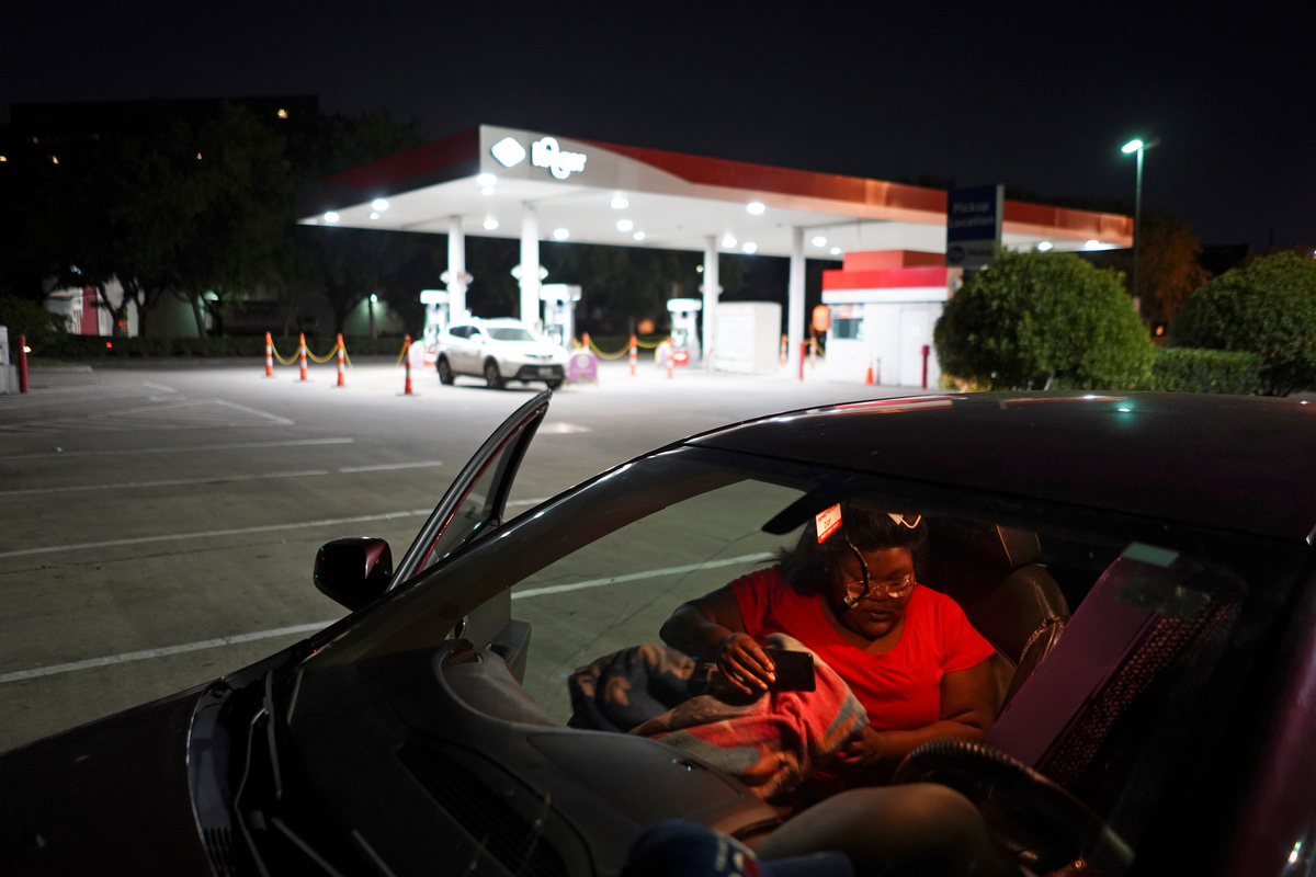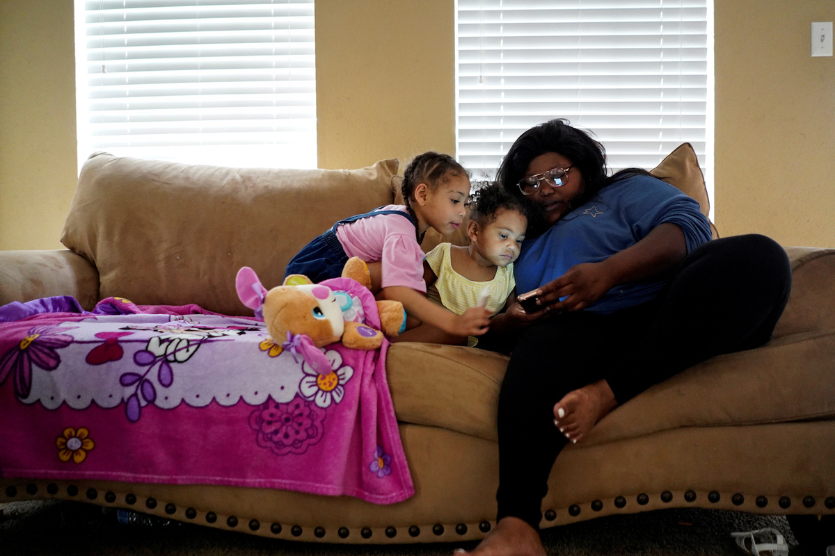 FILE PHOTO: Dominick Walton, who is homeless herself, adjusts her mask in her car before she drives to the next location to serve food to homeless people amid the coronavirus disease (COVID-19) outbreak in Houston, Texas, U.S., April 19, 2020. REUTERS/Go NakamuraFILE PHOTO: Dominick Walton, who is homeless herself, reaches to turn on the light in her car as she prepares to sleep amid the coronavirus disease (COVID-19) outbreak in Houston, Texas, U.S., April 26, 2020. REUTERS/Go NakamuraFILE PHOTO: Dominick Walton, who is homeless herself, plays with her nieces Kenley and Hazel as they self-quarantine at Dominick's sister's apartment amid the coronavirus disease (COVID-19) outbreak in Houston, Texas, U.S., April 25, 2020. REUTERS/Go NakamuraFILE PHOTO: Dominick Walton, who is homeless herself, poses in her car after serving food to homeless people amid the coronavirus disease (COVID-19) outbreak in Houston, Texas, U.S., April 19, 2020. REUTERS/Go NakamuraFILE PHOTO: Dominick Walton, who is homeless, sleeps in her car amid the coronavirus disease (COVID-19) in Houston, Texas, U.S., April 26, 2020. REUTERS/Go NakamuraFILE PHOTO: Dominick Walton, who is homeless herself, relaxes in the car where she sleeps in at a parking space amid the coronavirus disease (COVID-19) outbreak in Houston, Texas, U.S., April 21, 2020. REUTERS/Go NakamuraFILE PHOTO: Dominick Walton, who is homeless herself, serves food to homeless people amid the coronavirus disease (COVID-19) outbreak in Houston, Texas, U.S., April 19, 2020. REUTERS/Go NakamuraFILE PHOTO: Dominick Walton, who is homeless herself, prepares her bed for the day in her car at a parking space amid the coronavirus disease (COVID-19) outbreak in Houston, Texas, U.S., April 21, 2020. REUTERS/Go NakamuraFILE PHOTO: Dominick Walton, who is homeless, plays with her nieces Kenley and Hazel as they self-quarantine at Dominick's sister's apartment amid the coronavirus disease (COVID-19) outbreak in Houston, Texas, U.S., April 25, 2020. REUTERS/Go NakamuraFILE PHOTO: Dominick Walton, who is homeless, plays with her niece Hazel as they self-quarantine at Dominick's sister's apartment amid the coronavirus disease (COVID-19) outbreak in Houston, Texas, U.S., April 25, 2020. REUTERS/Go NakamuraFILE PHOTO: Dominick Walton, who is homeless herself, prepares food bags for homeless people in her sister's apartment amid the coronavirus disease (COVID-19) outbreak in Houston, Texas, U.S., April 26, 2020. REUTERS/Go NakamuraFILE PHOTO: Dominick Walton, who is homeless herself, puts a message on every food bags she makes for homeless people amid the coronavirus disease (COVID-19) outbreak in Houston, Texas, U.S., April 19, 2020. REUTERS/Go NakamuraFILE PHOTO: Dominick Walton, who is homeless herself, relaxes and watches a video on her smartphone before sleeping in her car at a parking space amid the coronavirus disease (COVID-19) outbreak in Houston, Texas, U.S., April 21, 2020. REUTERS/Go NakamuraFILE PHOTO: Dominick Walton, who is homeless herself, relaxes and watches a video on her smartphone before sleeping in her car at a parking space amid the coronavirus disease (COVID-19) outbreak in Houston, Texas, U.S., April 21, 2020. REUTERS/Go NakamuraFILE PHOTO: Dominick Walton, who is homeless herself, drives by a homeless person's shopping cart with a placard which reads "Doing my best at this time. Any help, blessing" amid the coronavirus disease (COVID-19) outbreak in Houston, Texas, U.S., April 19, 2020. REUTERS/Go NakamuraFILE PHOTO: Dominick Walton, who is homeless herself, walks back to her car after handing out food bags to homeless people amid the coronavirus disease (COVID-19) outbreak in Houston, Texas, U.S., April 26, 2020. REUTERS/Go NakamuraFILE PHOTO: Dominick Walton, who is homeless herself, watches a video with her nieces Kenley and Hazel as they self-quarantine at Dominick's sister's apartment amid the coronavirus disease (COVID-19) outbreak in Houston, Texas, U.S., April 25, 2020. REUTERS/Go NakamuraFILE PHOTO: Dominick Walton, who is homeless, plays with her nieces Kenley and Hazel as they self-quarantine at Dominick's sister's apartment amid the coronavirus disease (COVID-19) outbreak in Houston, Texas, U.S., April 25, 2020. REUTERS/Go NakamuraFILE PHOTO: Dominick Walton, who is homeless herself, serves food to homeless people amid the coronavirus disease (COVID-19) outbreak in Houston, Texas, U.S., April 26, 2020. REUTERS/Go NakamuraFILE PHOTO: Dominick Walton, who is homeless, sleeps in her car amid the coronavirus disease (COVID-19) outbreak in Houston, Texas, U.S., April 26, 2020. REUTERS/Go NakamuraFILE PHOTO: Dominick Walton, who is homeless herself, prepares food bags for homeless people in her sister's apartment amid the coronavirus disease (COVID-19) outbreak in Houston, Texas, U.S., April 26, 2020. REUTERS/Go NakamuraFILE PHOTO: Dominick Walton, who is homeless herself, poses in the car where she sleeps in at a parking space amid the coronavirus disease (COVID-19) outbreak in Houston, Texas, U.S., April 21, 2020. REUTERS/Go NakamuraFILE PHOTO: Dominick Walton, who is homeless herself, puts a message on every food bag she makes for homeless people amid the coronavirus disease (COVID-19) outbreak in Houston, Texas, U.S., April 26, 2020. REUTERS/Go NakamuraFILE PHOTO: A homeless person shows what is contained in the food bag she was given by Dominick Walton, who is also homeless herself, amid the coronavirus disease (COVID-19) outbreak in Houston, Texas, U.S., April 19, 2020. REUTERS/Go NakamuraFILE PHOTO: Dominick Walton, who is homeless, plays with her nieces Kenley and Hazel as they self-quarantine at Dominick's sister's apartment amid the coronavirus disease (COVID-19) outbreak in Houston, Texas, U.S., April 25, 2020. REUTERS/Go Nakamura