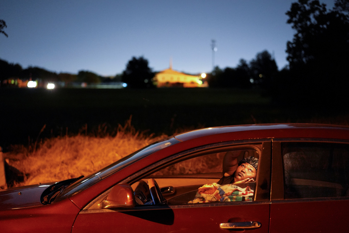 When she is done for the day, she parks her car near a mall, park, or just a quiet neighborhood, propping her cellphone against the car window while she stretches out in the front seat.