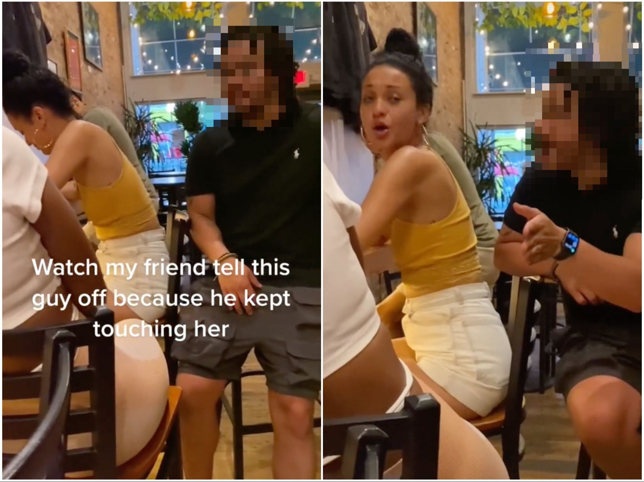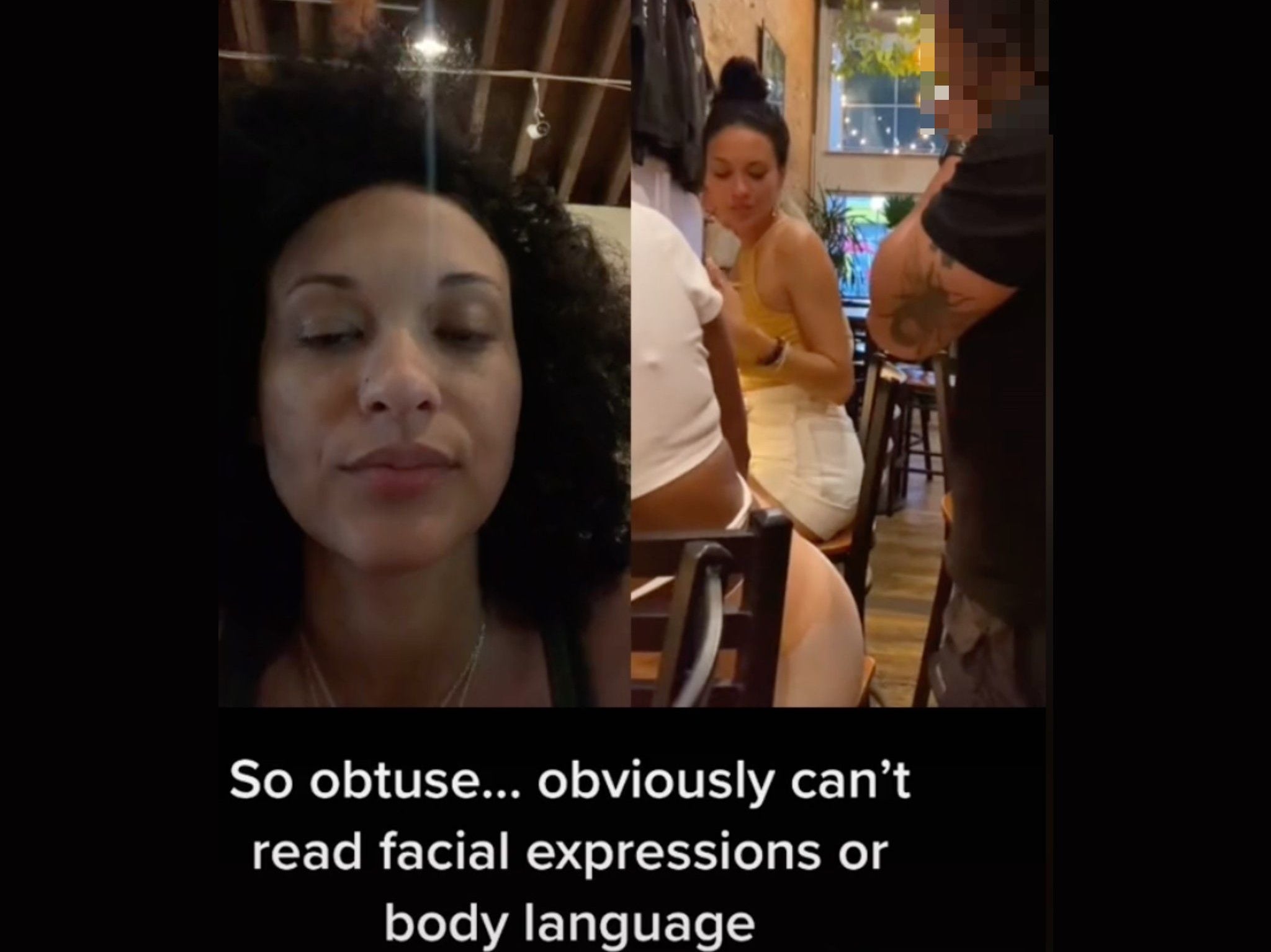 A video of the pair was shared to TikTok, showing the man with his chair uncomfortably close to hers as she sits with a friend in a bar.