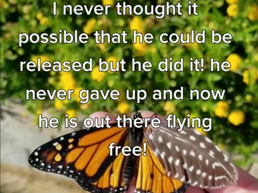 In response to how she attached the wing, the TikToker said she had ‘carefully researched how rescuers do it with contact cement and another butterfly wing.’