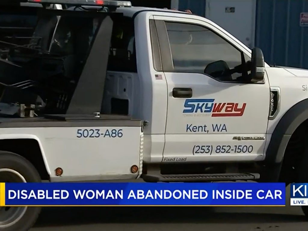 The woman, who has not been named but is said to have a disability, was reportedly inside a vehicle taken to the Skyway Towing and Recovery yard in St Burien, Washington state, earlier this month.