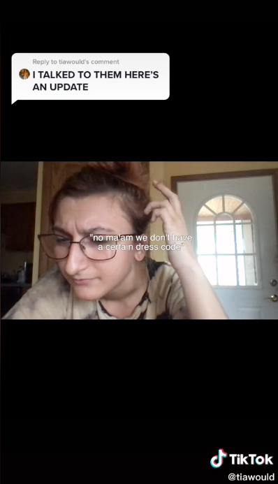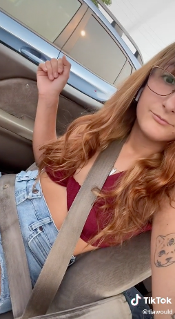(Picture: @tiawould/TikTok)A woman has claimed that she was told to leave a garage where she was having her car inspected because her crop top and shorts were too “inappropriate” for the facility.