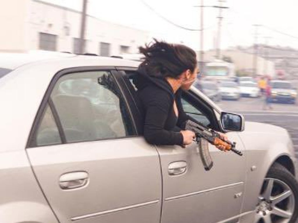 A photograph shared to their social media shows what appears to be a woman with long brown hair wearing a black hoodie while holding the intimidating firearm.
