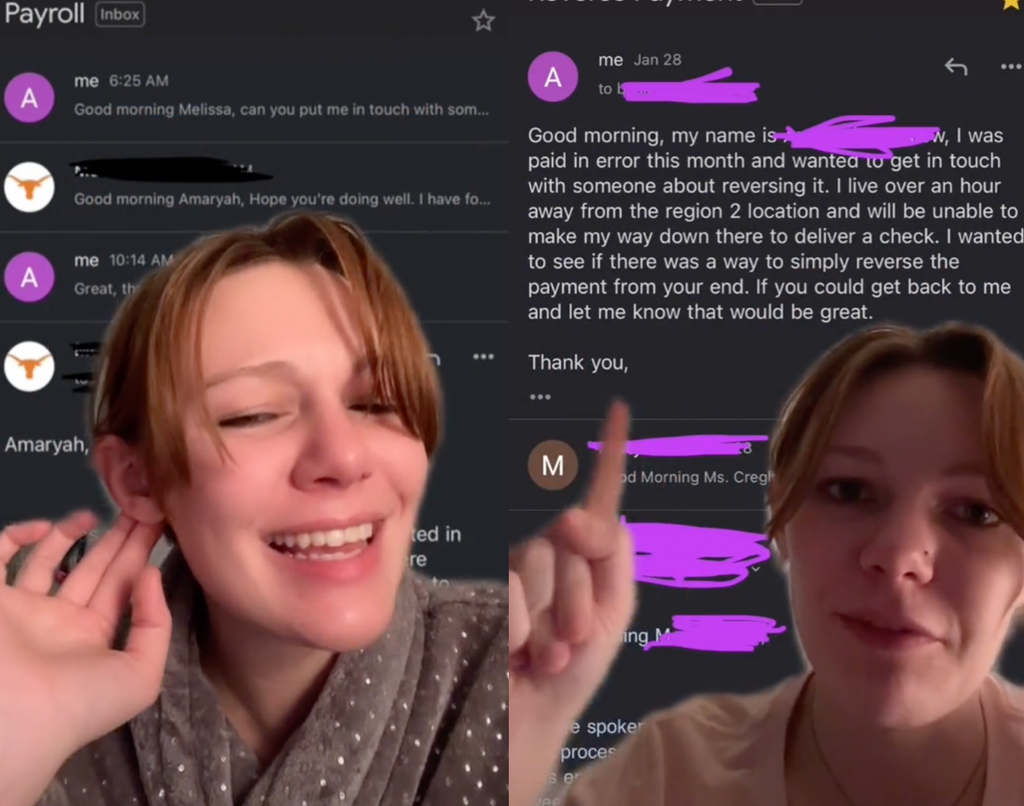 She messaged her old job and explained that she got “paid by accident.” Her employer told her that the funds were deposited “via error,” as she hasn’t worked there for over two months.