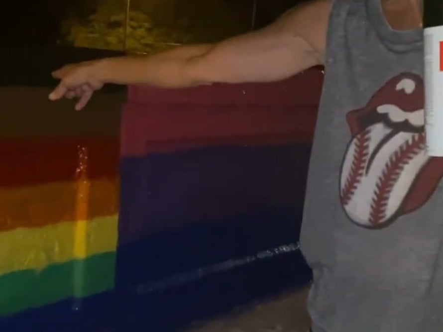 Posting on Instagram, Jasmine Martinez said: “We spray painted Pride flags on the bridge and then this Karen came and harassed us and called me and my girl immigrants and proceeded to paint over our work.”