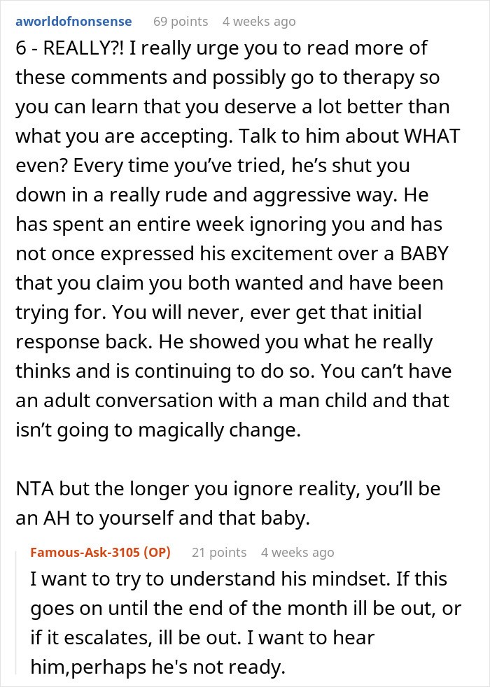 When breaking the news about a planned pregnancy (despite the husband’s reaction, the wife claims in her post that they were actively trying), experts recommend picking a private place and dedicating as much time to it as needed.