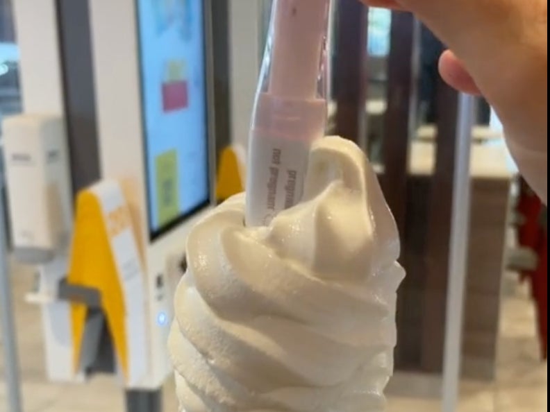 McDonald’s ice cream cone with a pregnancy test