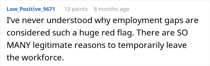 The woman in this story took a one-year break after 10 years of working in retail banking. She had a full-fleshed career for a decade, but because she took a gap year to travel, she was suddenly deemed ineligible for the job by the automated application system. As it turns out, gaps in one’s career are actually not that uncommon.