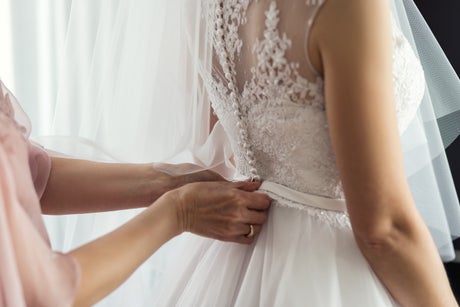 A woman made sure she was able to wear her wedding reception for a special occasion - even after her wedding was cancelled due to the ongoing pandemic.