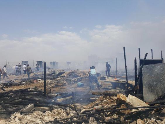 Souriya Nasser al Ahmad, 39, lives in one of the settlements affected just outside the town of Qom Elias, where it is thought the blaze was started by someone using a gas canister to cook in one of the camp’s 94 tents.