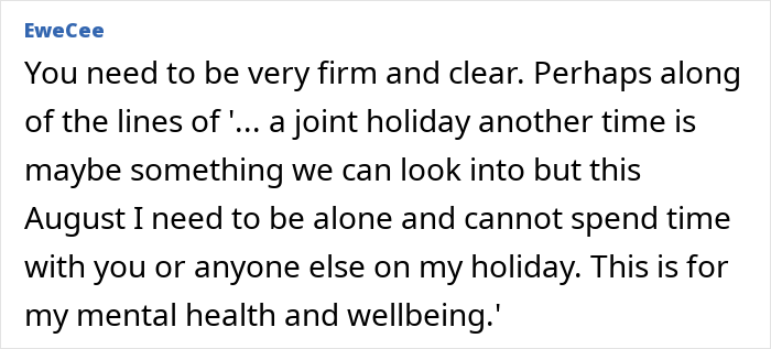If you value the friendship but still want to keep this trip solo, offer an alternative outing. Suggest a weekend getaway or a shorter adventure that suits you both. This shows you appreciate their enthusiasm and enjoy their company, just not on this particular journey. If you truly need the trip to be alone, be firm and kind in your boundary-setting: “I hope you understand, I really need this time to travel solo.” The truth is, if your friend does feel like they are getting enough of your attention, they should understand. At the same time, it’s true, sometimes people have abandonment issues and might struggle.