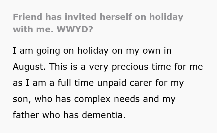 So one woman turned to people online for advice when her friend invited herself on her trip