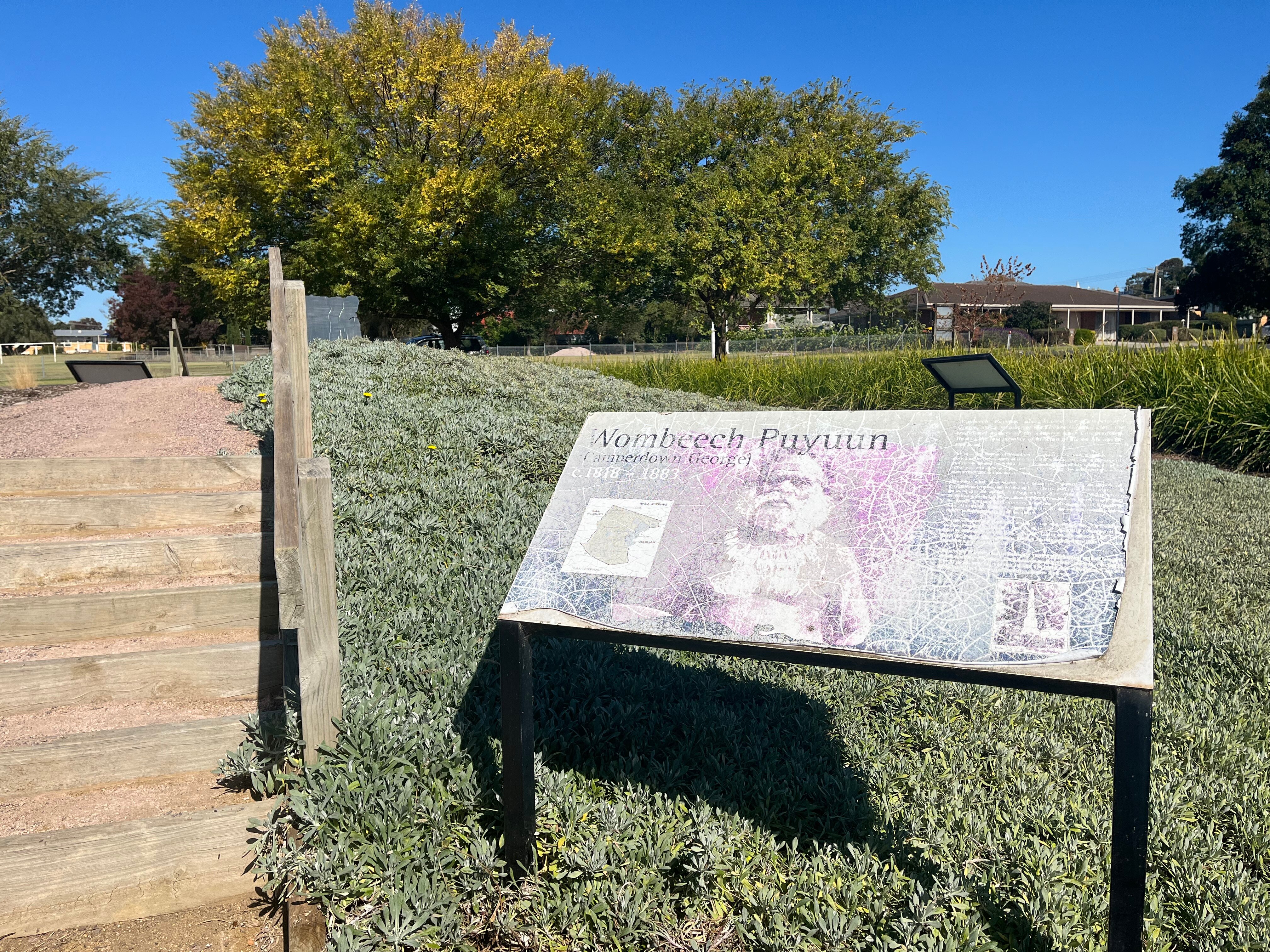 As the township of Camperdown grew around him, Wombeetch continued to live in a traditional bark hut called a mia mia near the present-day site of a garden in his honour.