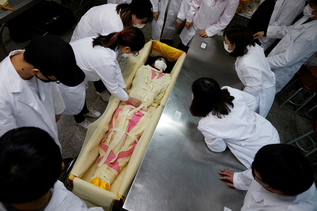 In the early 2000s, about a third of mortician students in the country were women, but today they make up around 60% of the class, said Lee Jong-woo, a professor of embalming at Eulji University in Seongnam near Seoul.