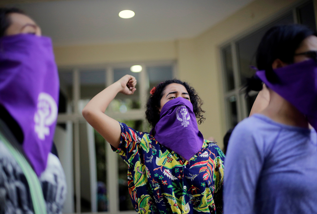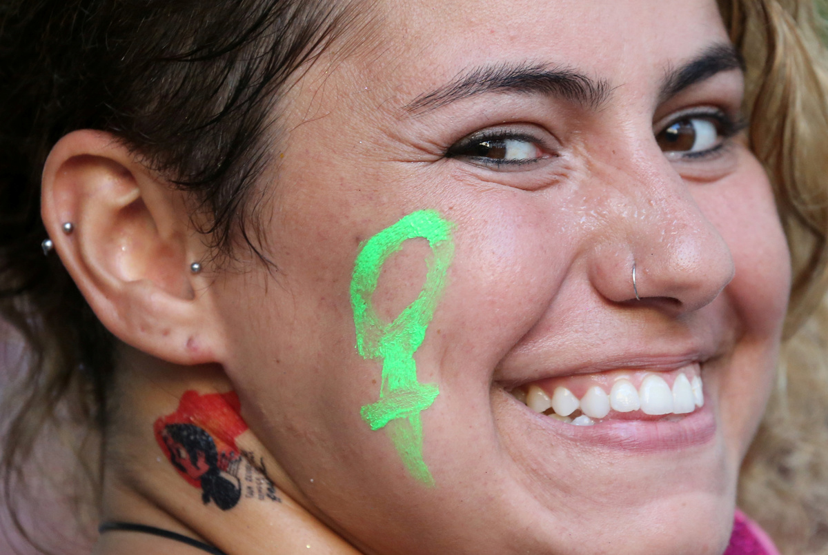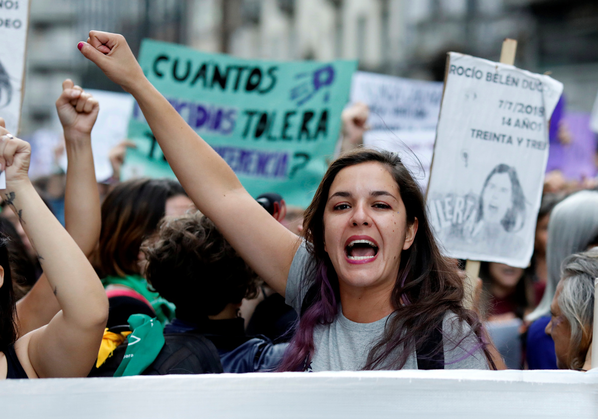 "Many people are trying to demonize feminism while it has always been a fight for equality," said Ana Sanz, 36, dressed in a red overcoat and white bonnet echoing the uniforms worn in the dystopian novel and TV series "The Handmaid's Tale".