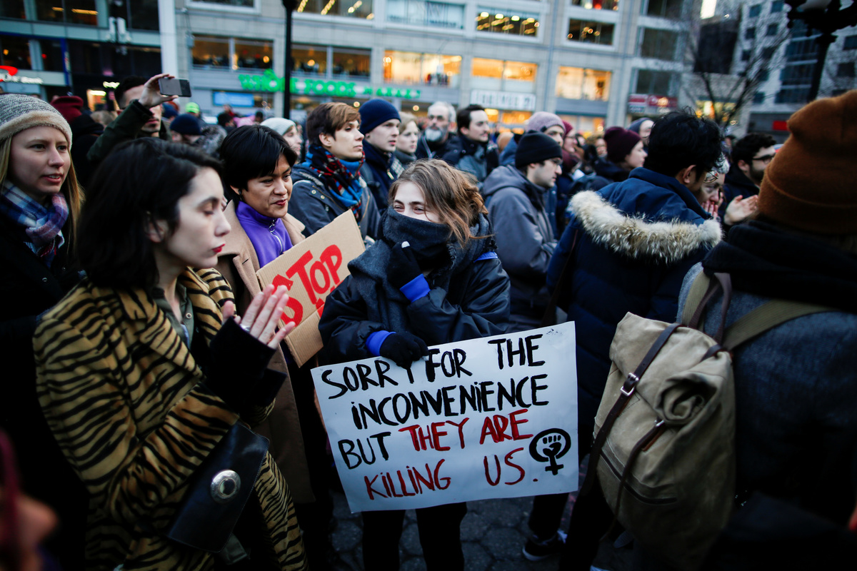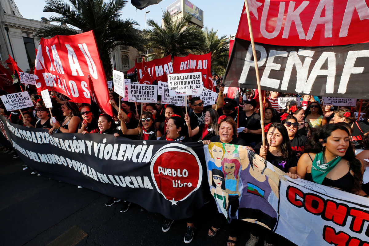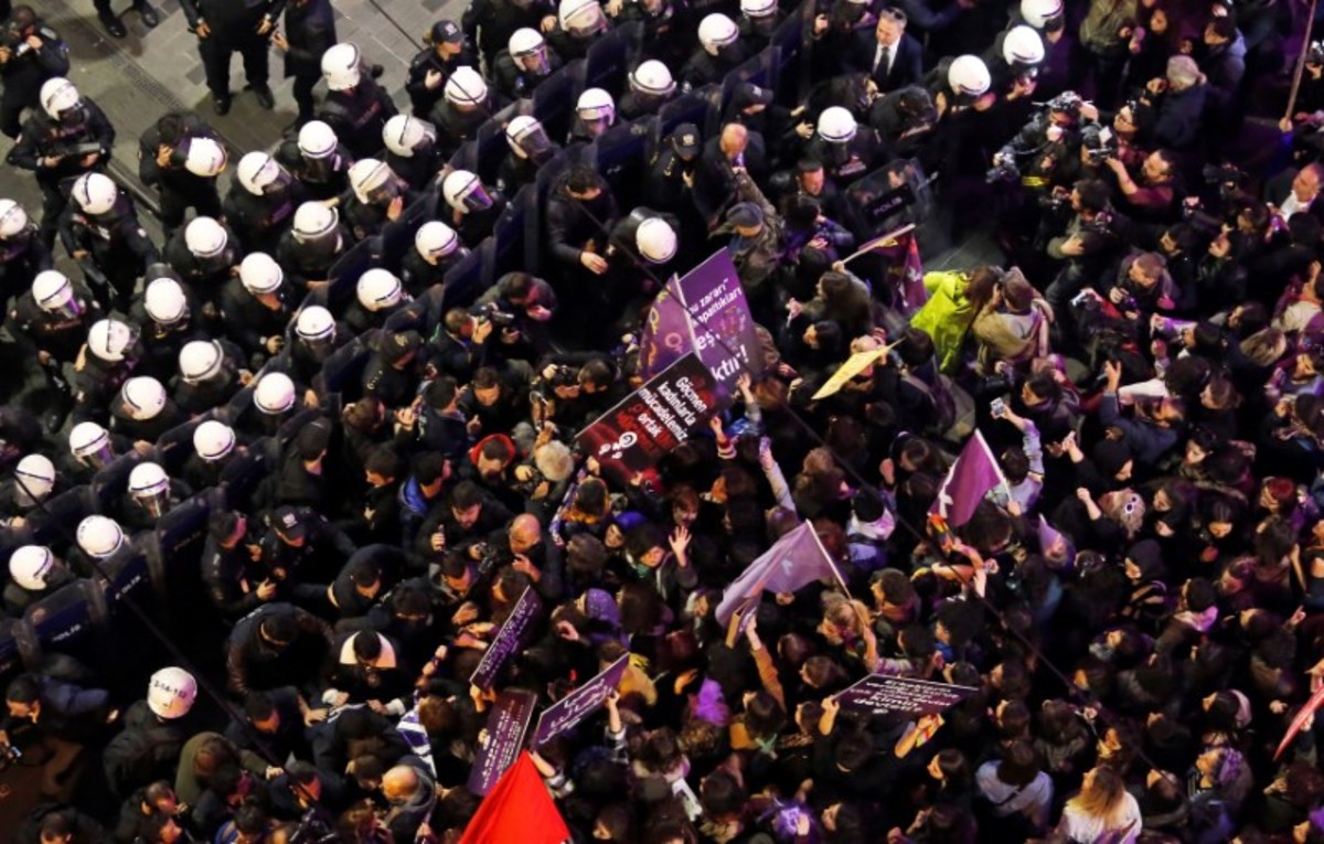 Hundreds of riot police blocked the marchers' path to prevent them advancing along the district's main pedestrian avenue. Police then fired pepper spray and pellets containing tear gas to disperse the crowd, and scuffles broke out as they pursued the women into side streets off the avenue.