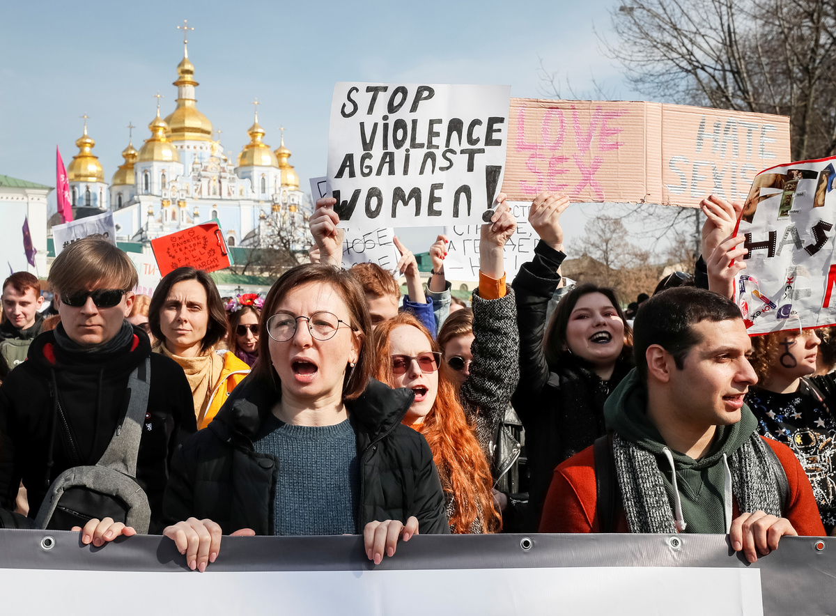In Athens and Kiev, women protesters demanded equality and an end to violence against women.