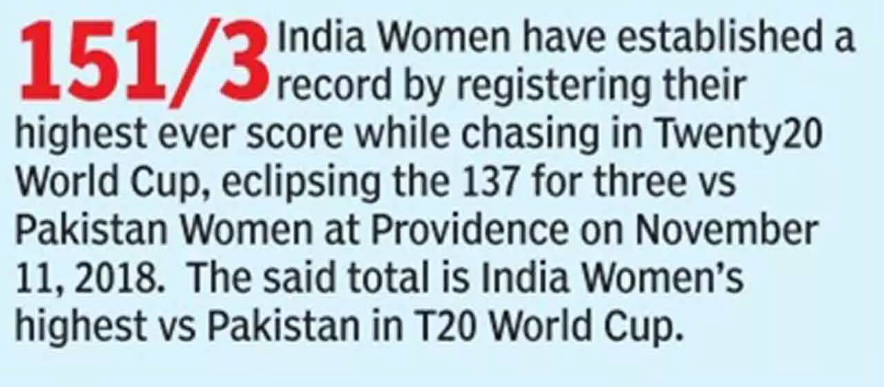 <p>India chased down a 150-run target to record the highest successful chase and second of all time in the history of the Women's T20 World Cup.<br /></p>AFP4/10:Rodrigues-Ghosh put on an unbeaten 58-run stand