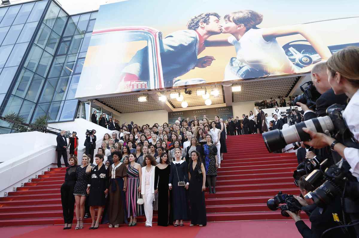 71st Cannes Film Festival - Screening of the film "Girls of the Sun" (Les filles du soleil) in competition - Red Carpet Arrivals - Cannes, France, May 12, 2018. 82 women from the film industry pose on the red carpet to represent the limited number of female filmmakers who have been selected for the festival's competition lineup over its 71 years. REUTERS/Stephane Mahe