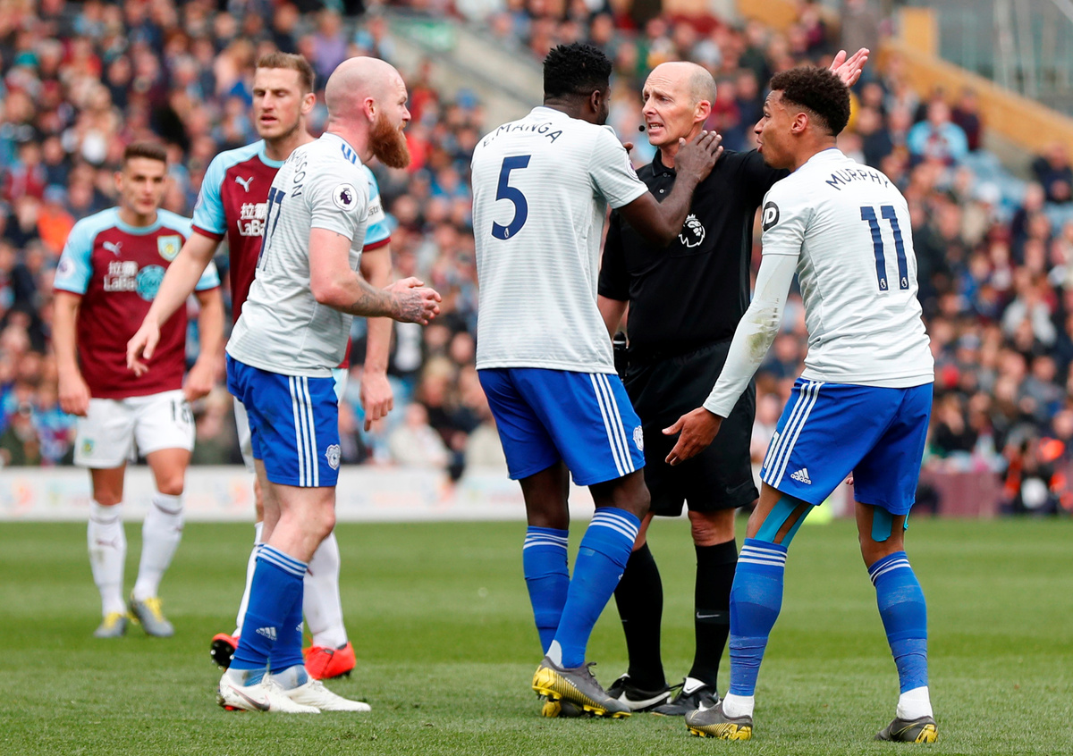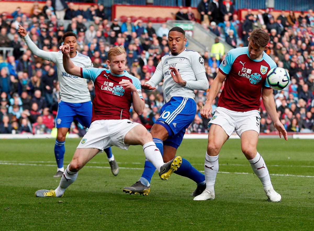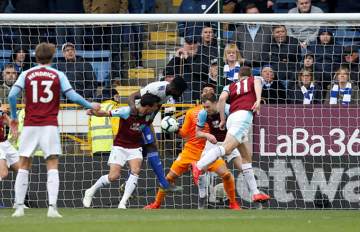 Cardiff, occupying the final relegation slot in 18th place, are on 28 points, five behind 17th-placed Brighton with five games remaining. Burnley, who have won three in a row, move up to 14th place on 39 points -- 11 ahead of Cardiff.