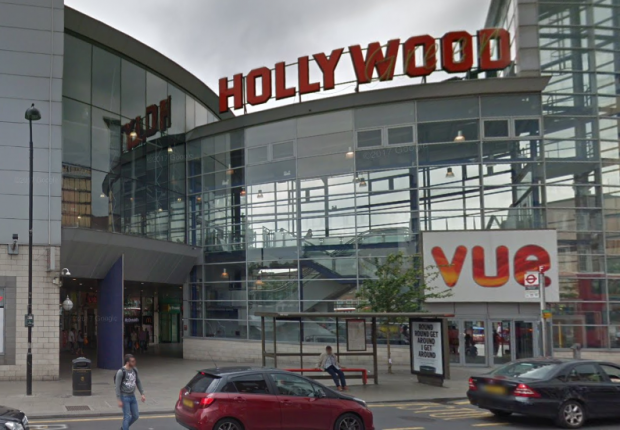The victim was found suffering from a gunshot wound outside Vue cinema complex on Hollywood Green.