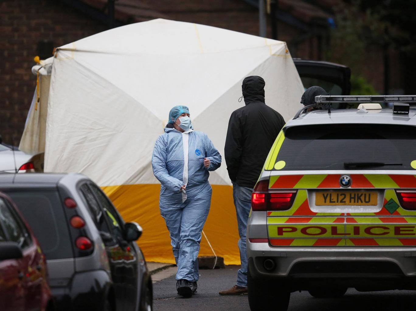 A white forensics tent was erected near an ambulance in the residential street, which is lined on either side with cars, and plain clothes officers were seen with evidence bags.