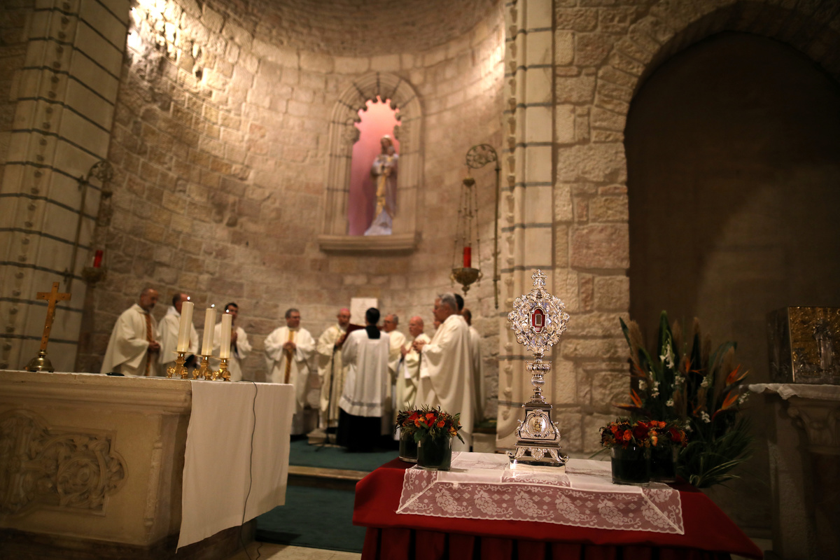 A worshipper prays as a fragment of a wooden relic, reputed to be from Jesus' manger, is displayed ahead of its transfer to Jesus' birthplace in Bethlehem for the official launch of Christmas season, in Jerusalem's Notre Dame, November 29, 2019. REUTERS/Ammar AwadWorshippers pray and look on as a fragment of a wooden relic, reputed to be from Jesus' manger, is displayed ahead of its transfer to Jesus' birthplace in Bethlehem for the official launch of Christmas season, in Jerusalem's Notre Dame, November 29, 2019. REUTERS/Ammar AwadA fragment of a wooden relic, reputed to be from Jesus' manger, is displayed ahead of its transfer to Jesus' birthplace in Bethlehem for the official launch of Christmas season, in Jerusalem's Notre Dame, November 29, 2019. REUTERS/Ammar AwadA worshipper photographs a fragment of a wooden relic, reputed to be from Jesus' manger, is displayed ahead of its transfer to Jesus' birthplace in Bethlehem for the official launch of Christmas season, in Jerusalem's Notre Dame, November 29, 2019. REUTERS/Ammar AwadA worshipper prays as a fragment of a wooden relic, reputed to be from Jesus' manger, is displayed ahead of its transfer to Jesus' birthplace in Bethlehem for the official launch of Christmas season, in Jerusalem's Notre Dame, November 29, 2019. REUTERS/Ammar Awad