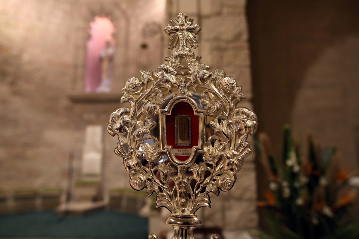 A fragment of a wooden relic, reputed to be from Jesus' manger, is displayed ahead of its transfer to Jesus' birthplace in Bethlehem for the official launch of Christmas season, in Jerusalem's Notre Dame, November 29, 2019. REUTERS/Ammar Awad