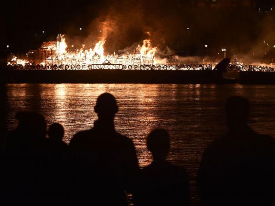 Sunday night saw a 120-metre long sculpture of the 17th-century London skyline burn in a dramatic retelling of the story of the Great Fire. It was the finale of the London's Burning festival - a programme of free art events - is taking place at locations including St Paul's, the Tate Modern and the National Theatre.