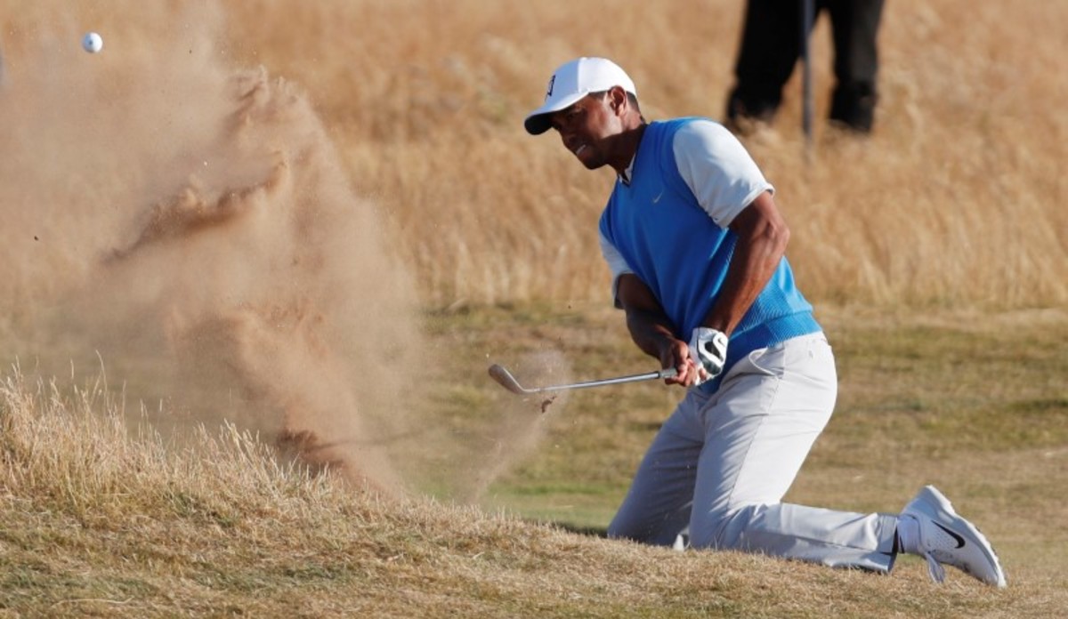 Woods, who was wearing protective black physio tape on his neck, faltered after the turn as Carnoustie's steep-sided pot bunkers took their toll, gobbling up a few errant shots.