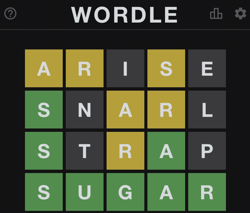 (Fun fact: it seems that while the full list of words accepted by Wordle includes plurals ending in S, the shorter list of possible answers excludes plural words — like “beers,’ for example — meaning that the S will rarely appear at the end of the word.)