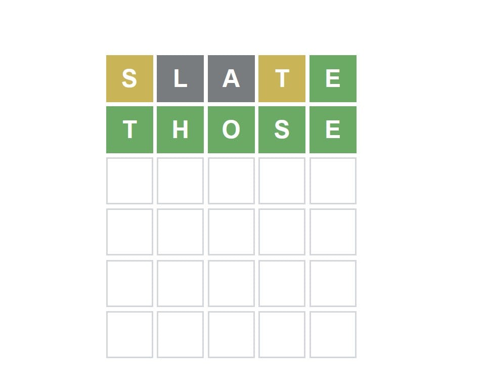 In our case, our usual starter word SLATE led us directly there. It showed us the correct position of E while also revealing the use of both S and T. With these three hints in tow, we were able to guess the answer on our second shot.