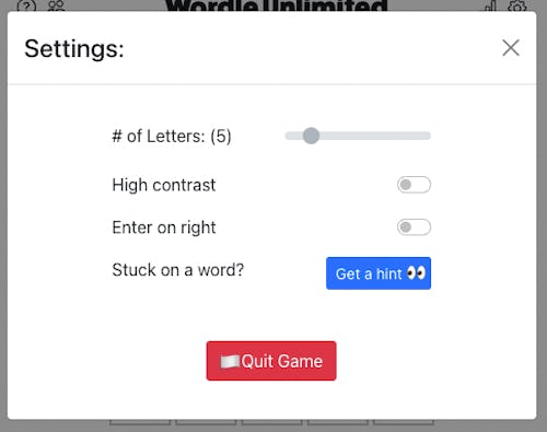 After playing through a game, you can simply reset it for a new word. It also allows for more complex play: users can adjust the number of letters in the word for longer or shorter challenges.