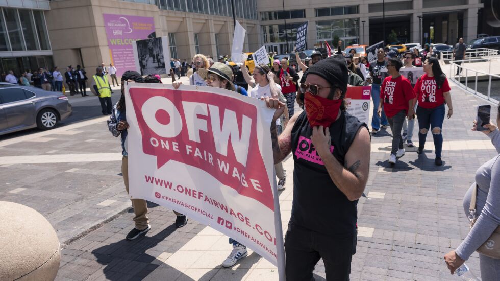 The protesters were also angry about a New York Times report from January that showed the National Restaurant Association lobbied to suppress tipped workers’ wages with funds from mandatory training programs paid by those very workers.