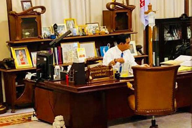 The candid picture of Gen Prayut sitting at his desk in the Thai Khu Fah Building in the Government House compound was posted on the Facebook account "Gen.Prayut Chan-o-cha ทีมงาน" on Thursday morning.