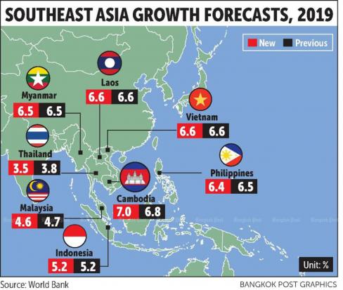 The Washington-based institution downgraded Thailand's 2019 GDP growth outlook to 3.5% from the 3.8% seen in January, according to the bank's "Global Economic Prospects" report.