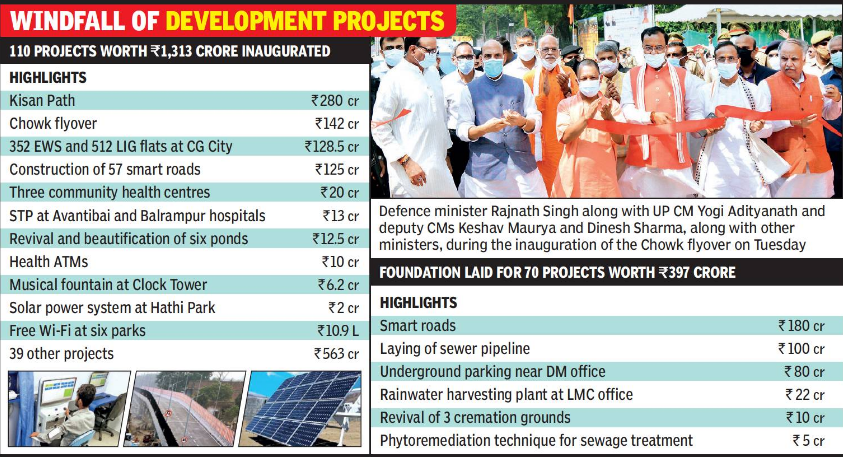 “The projects being inaugurated and those whose foundations have been laid speak volumes about the change in Lucknow and the state. These projects will not only resolve traffic issues in the city, but also provide world-class facilities to citizens,” he said.