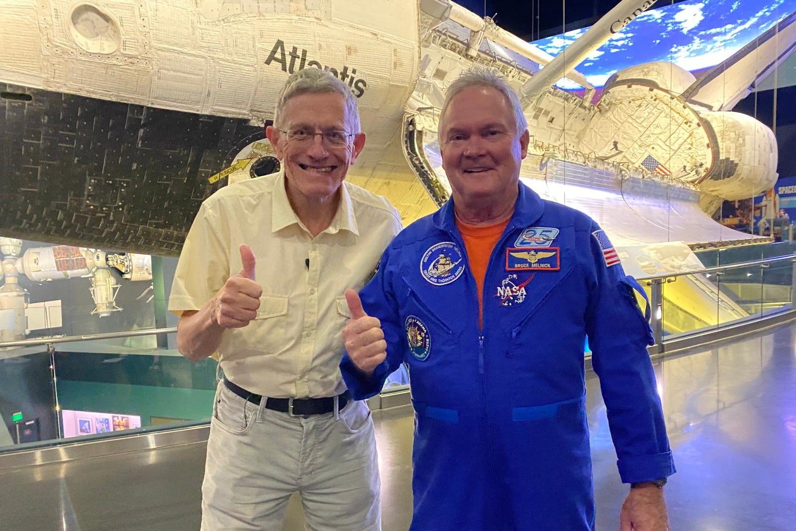 Star man: Astronaut Bruce Melnick (right) and Simon Calder at Kennedy Space Center in Florida, with the Space Shuttle Atlantis in the background (Charlotte Hindle)